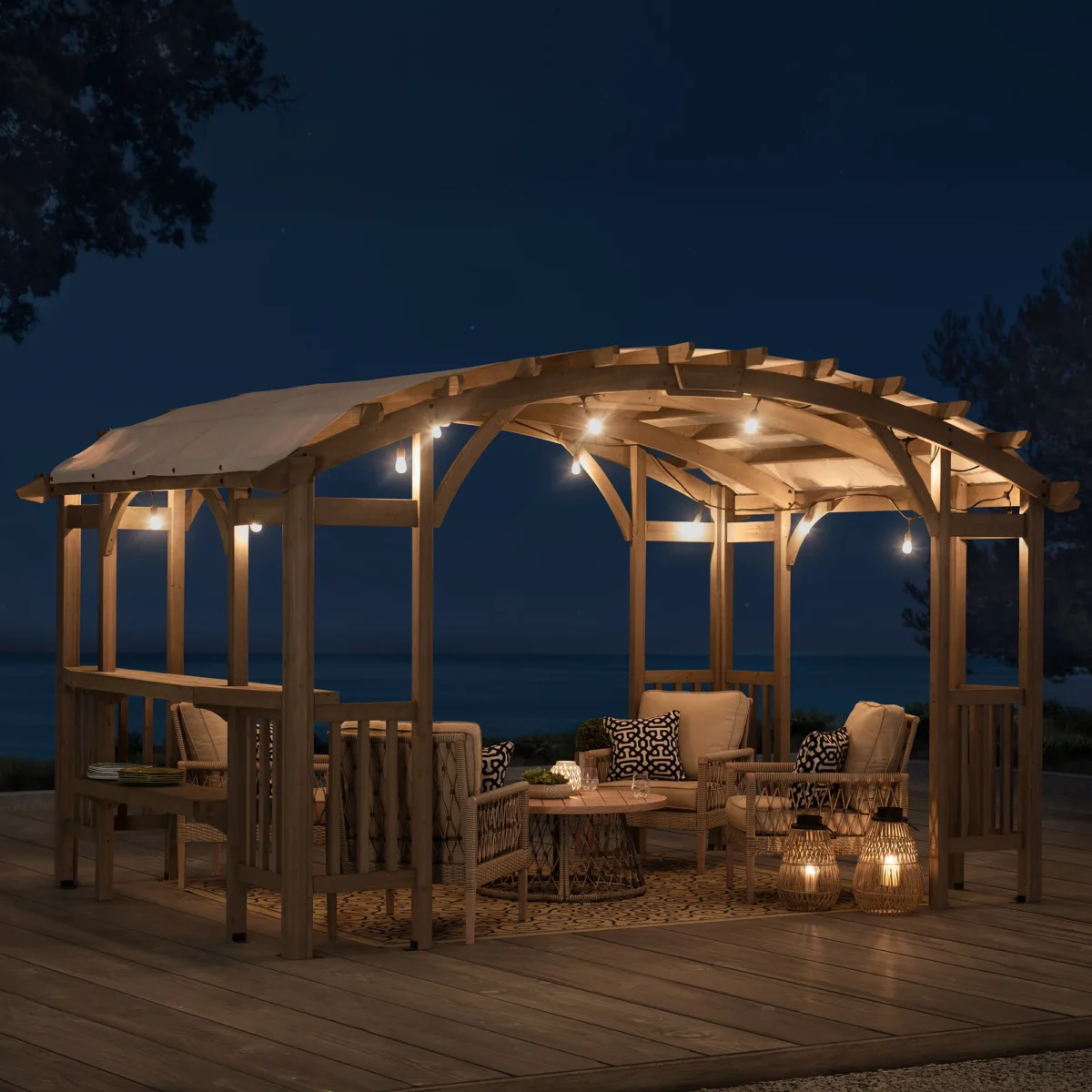 • Premium Cedar Wood Construction: Built with a sturdy cedar wood frame supported by 12 columns for superior strength and stability.
