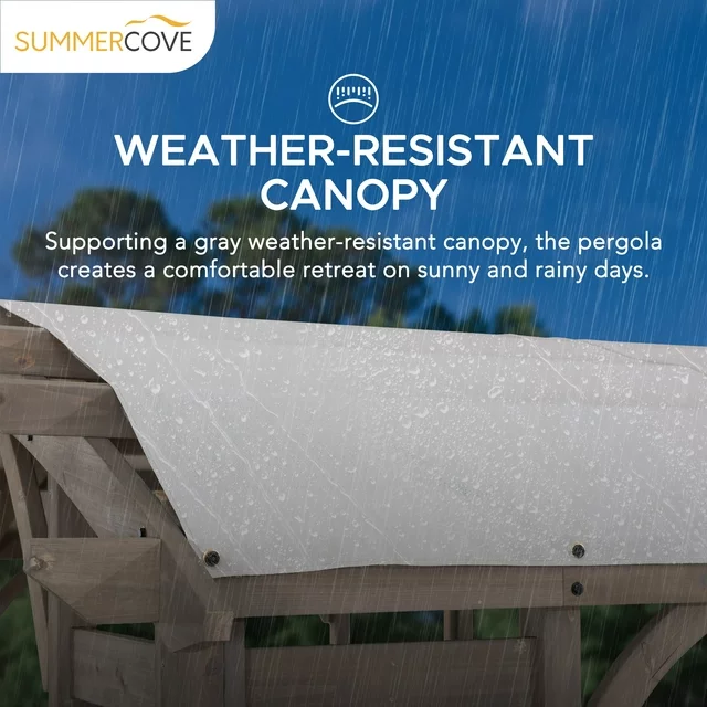 Wish you could entertain friends outdoors more comfortably? The Sunjoy Bellucci 10 ft. x 14 ft. arched cedar pergola with a weather-resistant light grey canopy offers the perfect shaded retreat for sunny days. Its elegant arched design, premium cedar wood frame, and built-in shelves create a stylish and functional outdoor oasis for gatherings, relaxation, or dining al fresco.